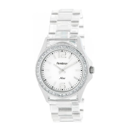 Buy Now! Armitron Women's 753935WTCL Swarovski Crystal Silver-Tone and Clear Resin Bracelet Watch